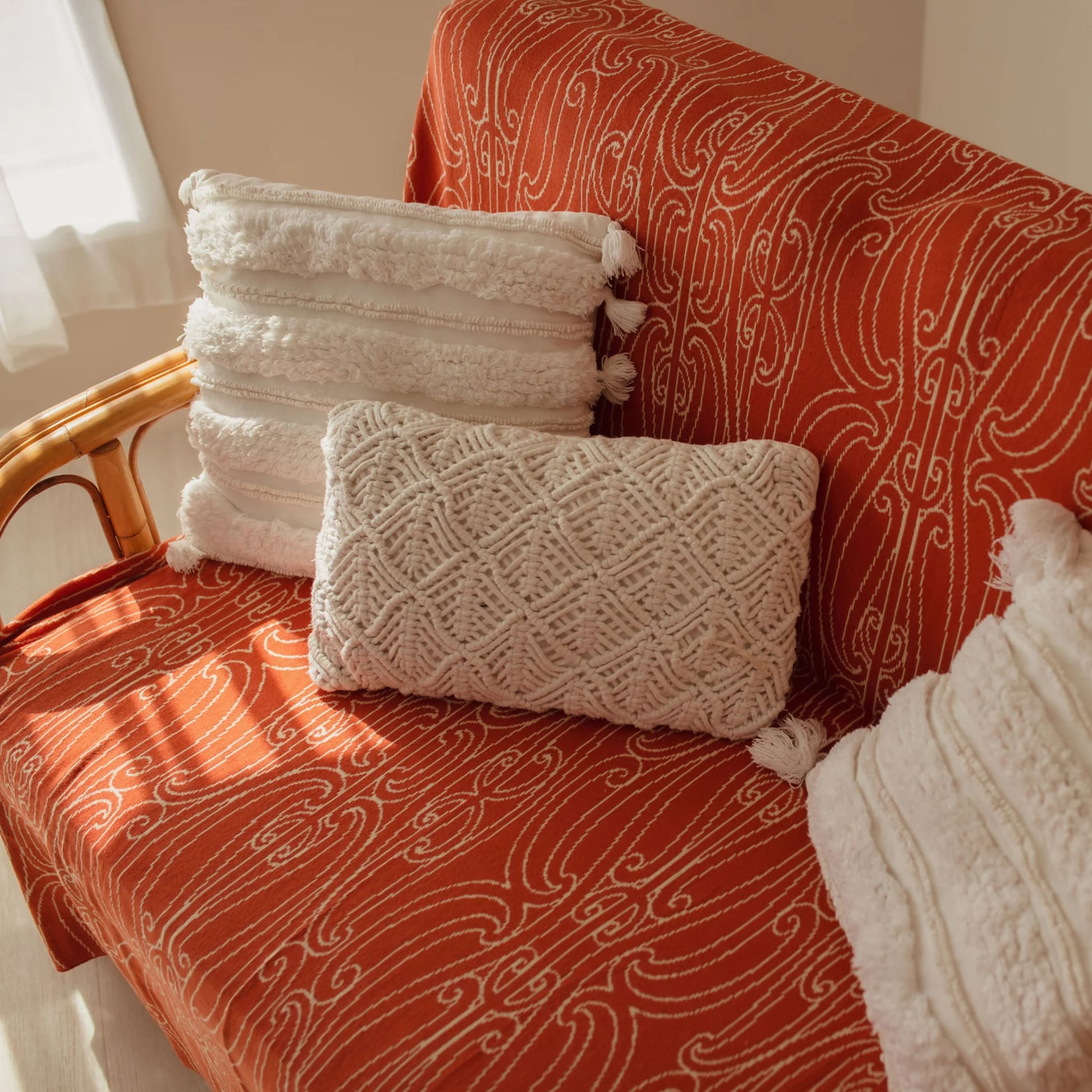 Finely woven 100% Organic Cotton Paraikete (blanket). Cotton fibres breathe naturally.